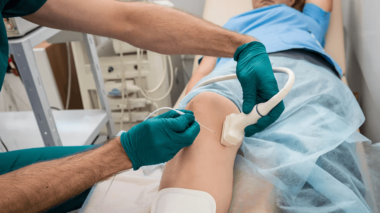 Die Behandlung dauert etwa 30–45 Minuten. Nach lokaler Betäubung wird unter Röntgenkontrolle eine spezielle Nadel an den Zielnerv geführt. Durch einen kurzen Stromimpuls wird zunächst getestet, ob die richtige Stelle erreicht ist. Anschließend wird der Nerv durch kontrollierte Wärme (ca. 80°C) verödet. Sie können die Praxis nach kurzer Erholungszeit selbstständig verlassen.